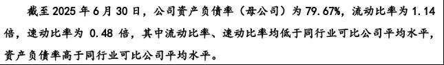 除了业绩增速放缓外,泰金新能高企的负债率始终是悬在经营之上的“达摩克利斯之剑”。受前期订单扩张与预收款项核算影响,公司负债规模持续高企:2022年至2024年合并报表口径资产负债率分别达91.35%、92.04%、84.86%,即便2025年上半年有所回落至79.47%,仍高于同行业可比公司平均水平。